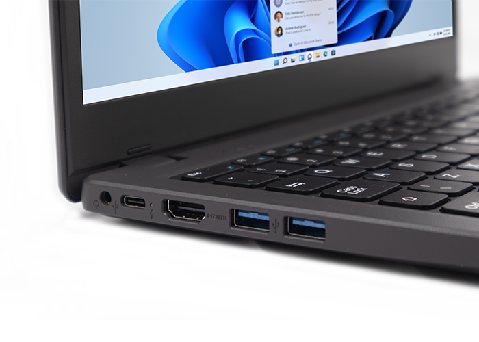 I/O • 1× DC-in (4.0 Ø) | 2× USB 3.2 Gen1 Type-A | 1× USB 2.0 Type-A | 1× USB 3.2 Type-C | 1× HDMI | 1× Micro SD Card Reader | 1× RJ45 (Optional) | 1× Combo Audio Jack | 1× SIM Card Slot (Optional) | 1× Kensington Lock